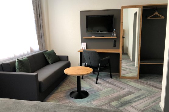 Thanks to the simple and modern furniture, all our rooms offer sufficient space to feel comfortable in. Even the smallest room offers space for movement. The basic equipment of each room includes a private bathroom with shower, toilet, sink, hairdryer, internet access LAN/Wifi, cable TV and a safe.