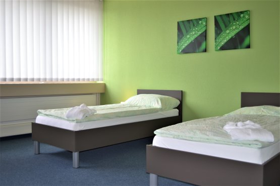 The twin bedded rooms offer space to feel comfortable and the furniture is modern. All double rooms are bright, cosy and most importantly practical for your stay. The basic equipment of each room includes a corridor bathroom (lockable) with shower, toilet, sink, hairdryer, internet access LAN/Wifi, cable TV and a safe.