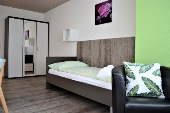 Thanks to the simple and modern furniture, all our rooms offer sufficient space to feel comfortable in. Even the smallest room offers space for movement. The basic equipment of each room includes a corridor bathroom (lockable) with shower, toilet, sink, hairdryer, internet access LAN/Wifi, cable TV and a safe.